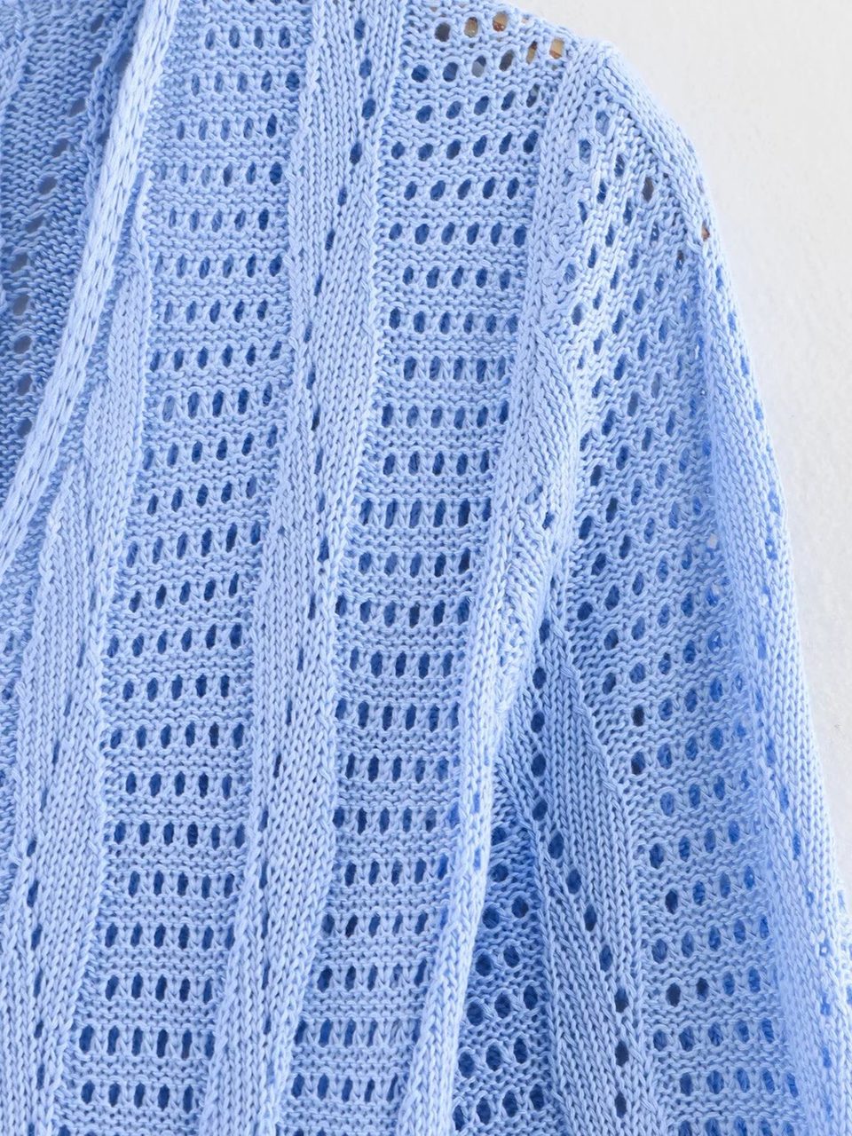 Notre robe bohème chic au crochet longue bleue, présente des manches longues pour être adaptées à encore plus d'occasions et un décolleté en V plongeant qui attire le regard. Sa couleur bleue ajoute une touche de mystère et de glamour et sa maille délicate forme des motifs géométriques qui la rende tendance.