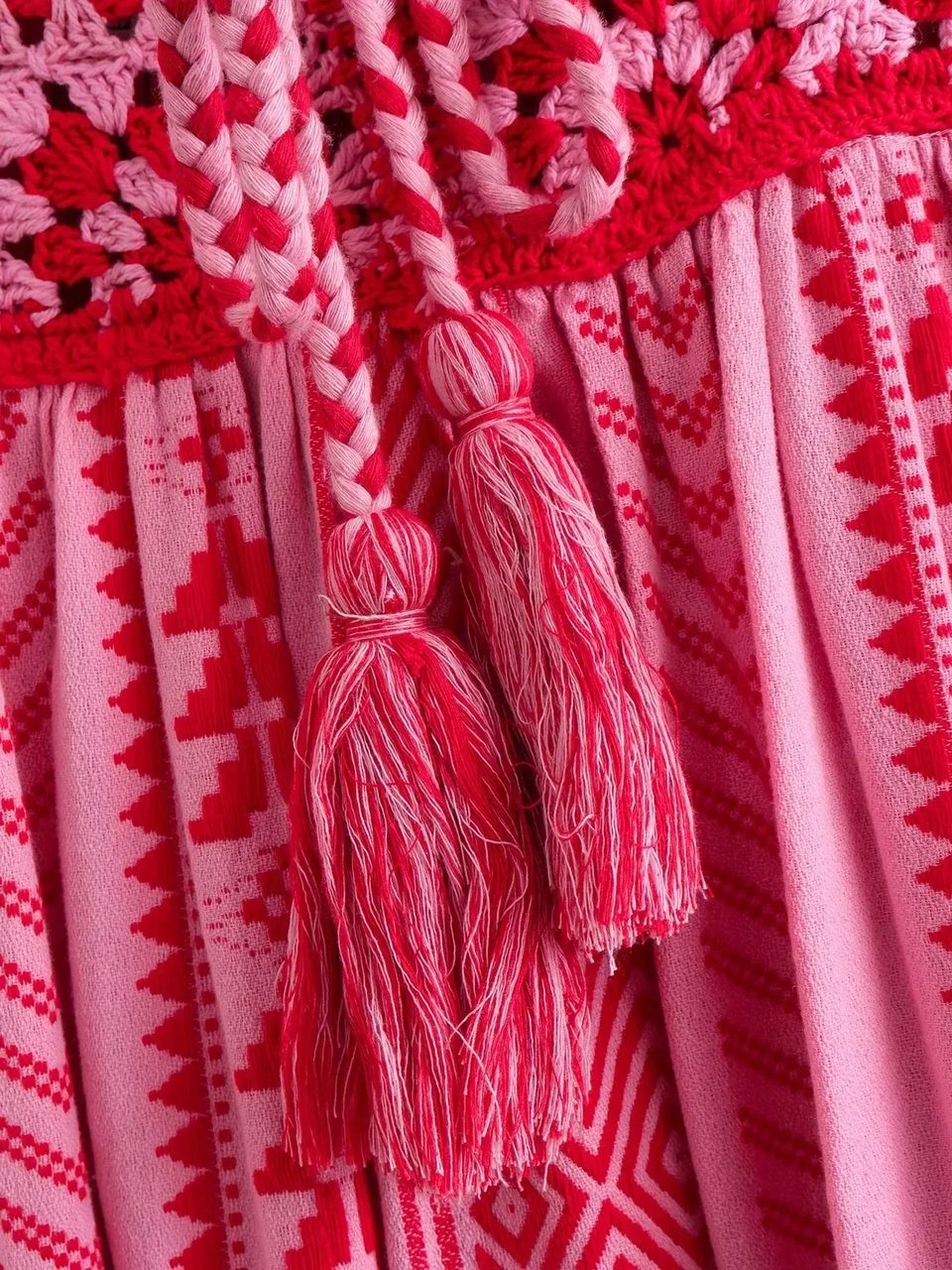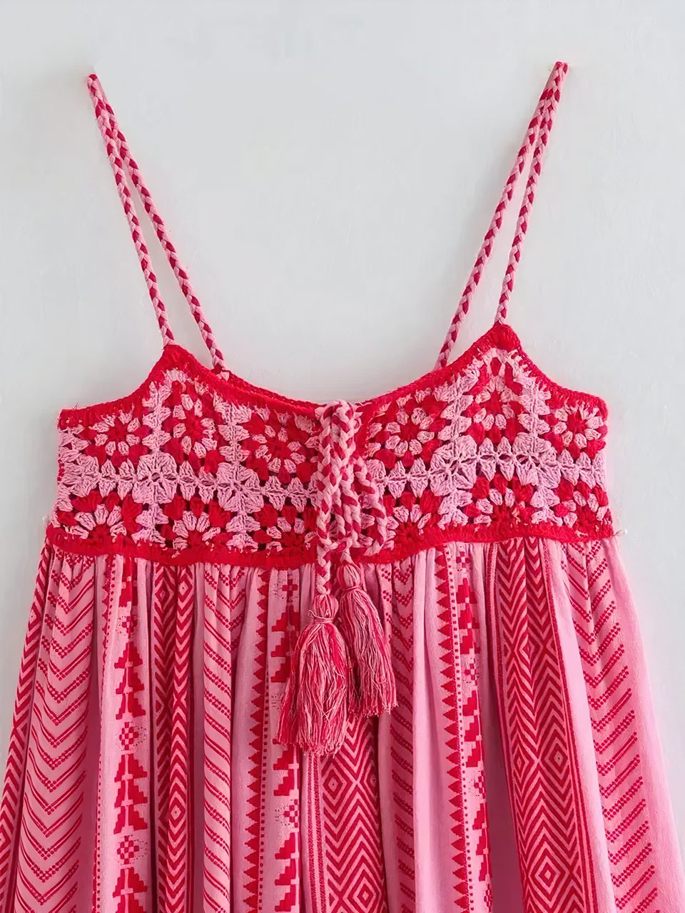 Le haut de notre robe bohème longue bi-matière est faite au crochet. Une des techniques phare de la mode bohème qui ajoute une touche originale et authentique à cette pièce. Très agréable sur la peau, le crochet et les fines bretelles se posent délicatement sur vous. La taille empire de la robe mettra également votre poitrine en valeur.
