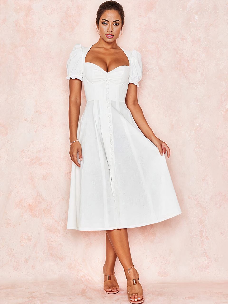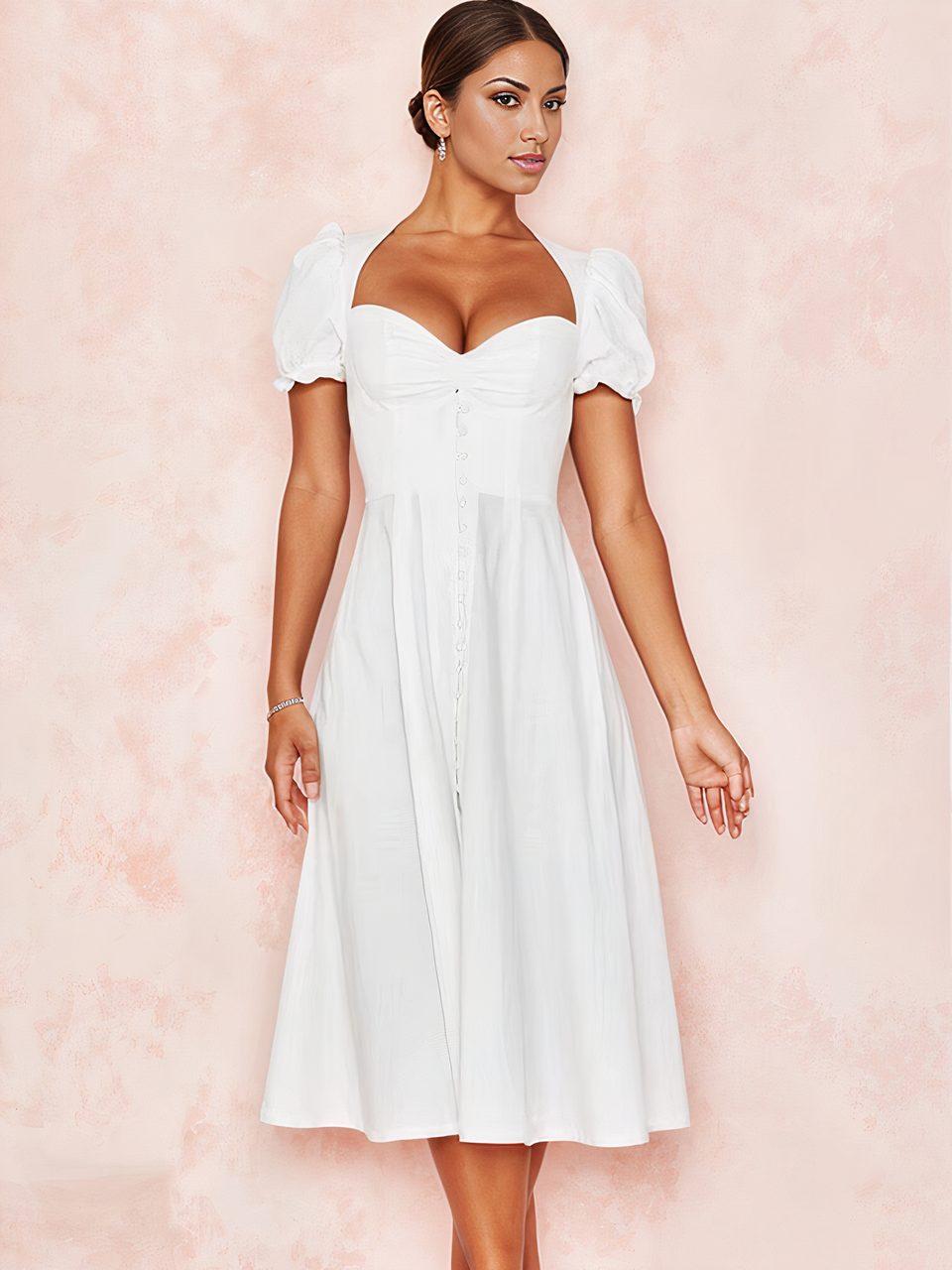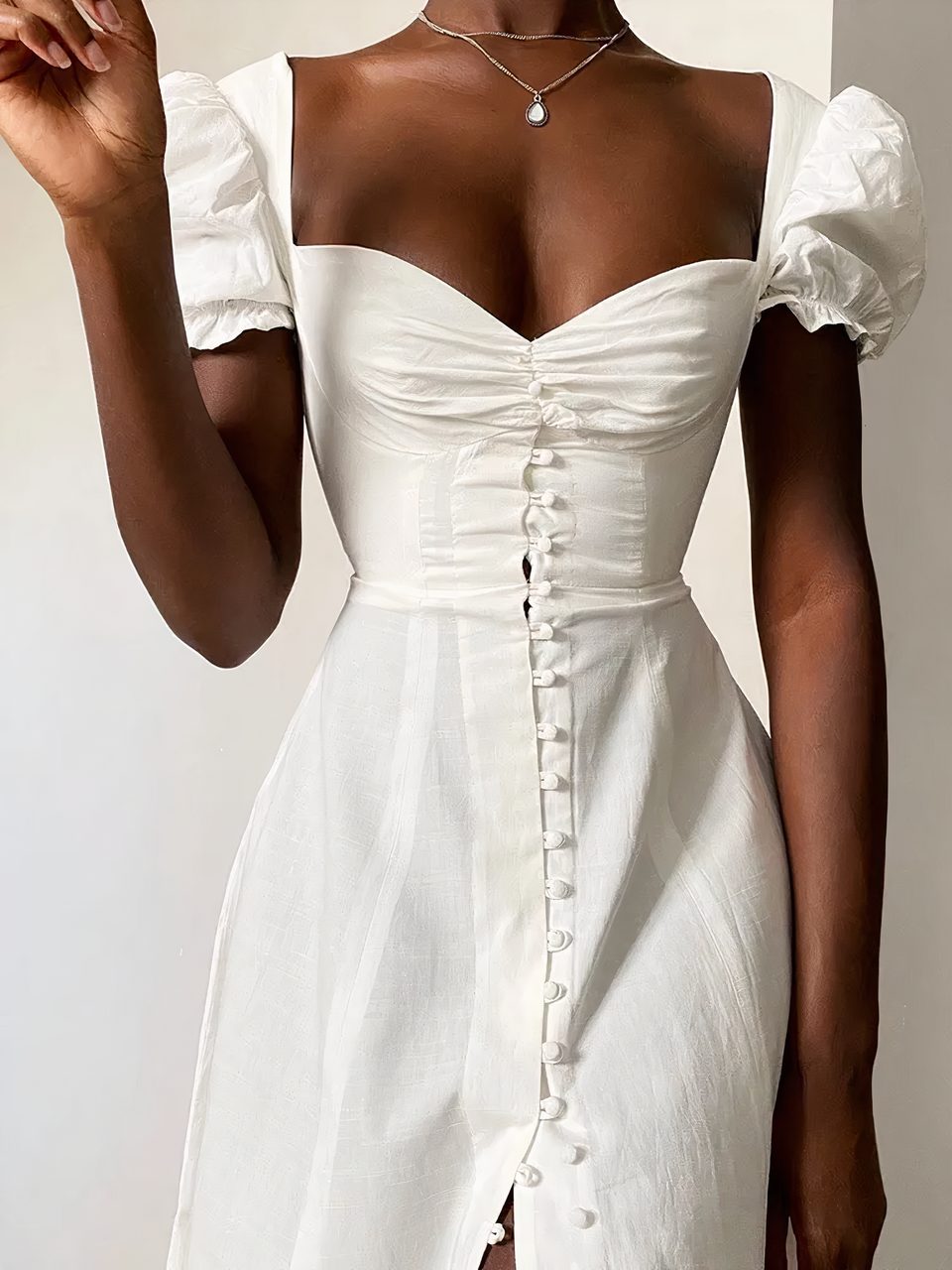 Cette robe est parfaite pour toutes les occasions, des plus spéciales au plus classiques. Vous pourrez la porter avec des petites sandales ou bien des talons, avec des accessoires minimalistes, bohèmes ou colorés. Quel que soit votre style, elle vous garantit un look irrésistible. Alors, laissez-vous séduire par cette joli robe Bridgerton blanche boutonnée.