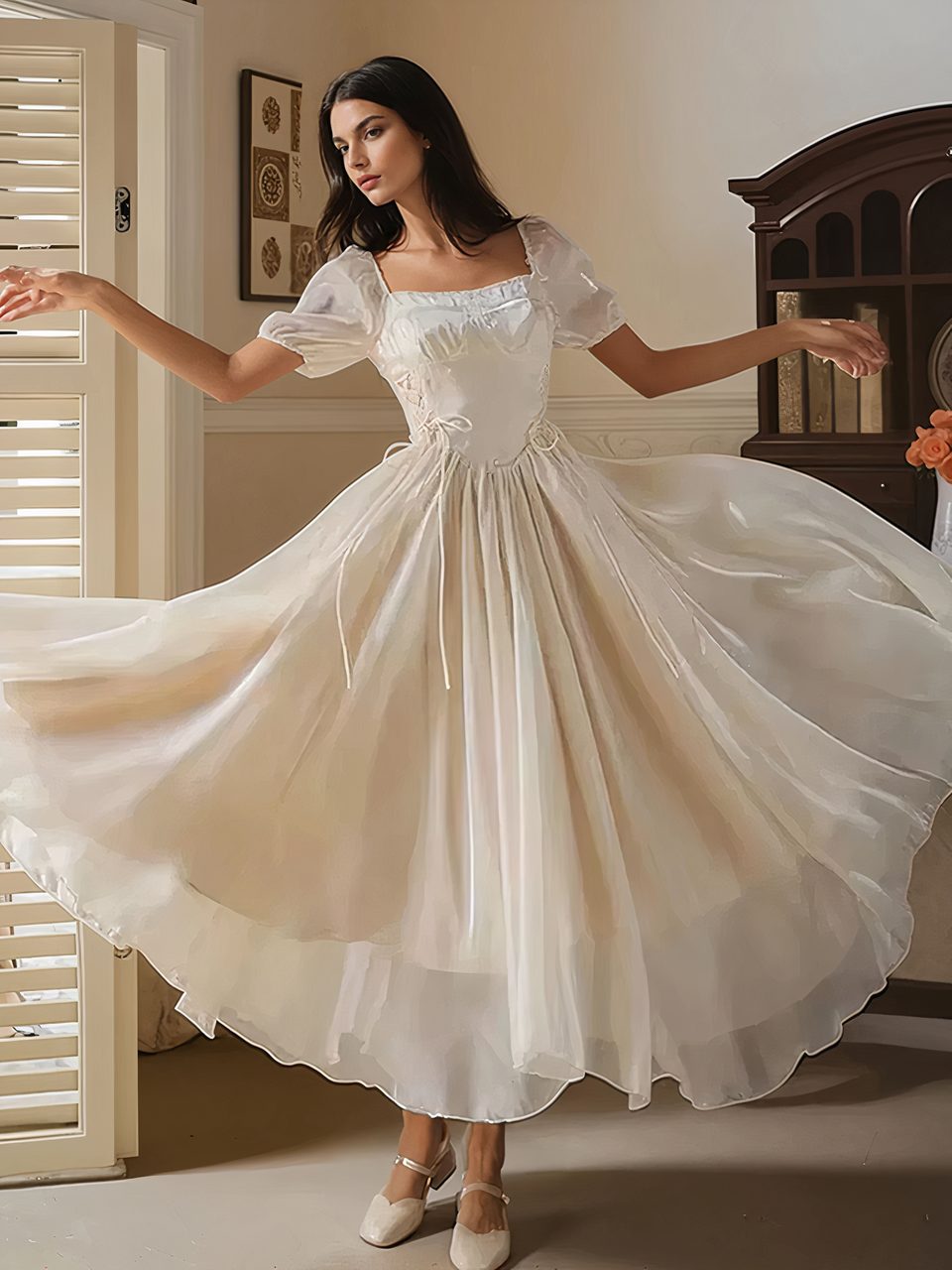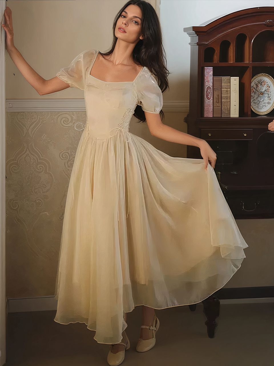 Cette robe est parfaite pour les occasions spéciales telles que les soirées de cocktails en plein air, les après-midi champêtre ou même, les soirées costumées. Elle vous transportera dans un monde de romance, où vous vous sentirez comme une véritable princesse des temps moderne. Vous pourrez la porter aussi bien avec des chaussures plates que à talons, avec ou sans accessoires.