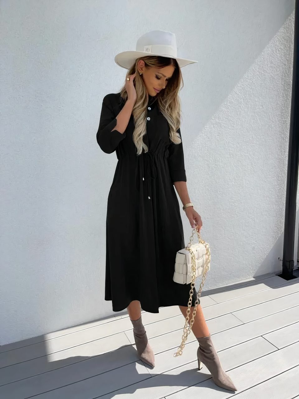 La robe chemise est un grand basique du dressing féminin. À la fois confortable, seyante, facile à porter en toute occasion et indémodable, c'est LA robe polyvalente par excellence. Déclinée en trois couleurs différentes pour plaire à toutes nos clientes, vous adorerez la porter dès l'arrivée des beaux jours, alors n'hésitez plus et soptez-la !