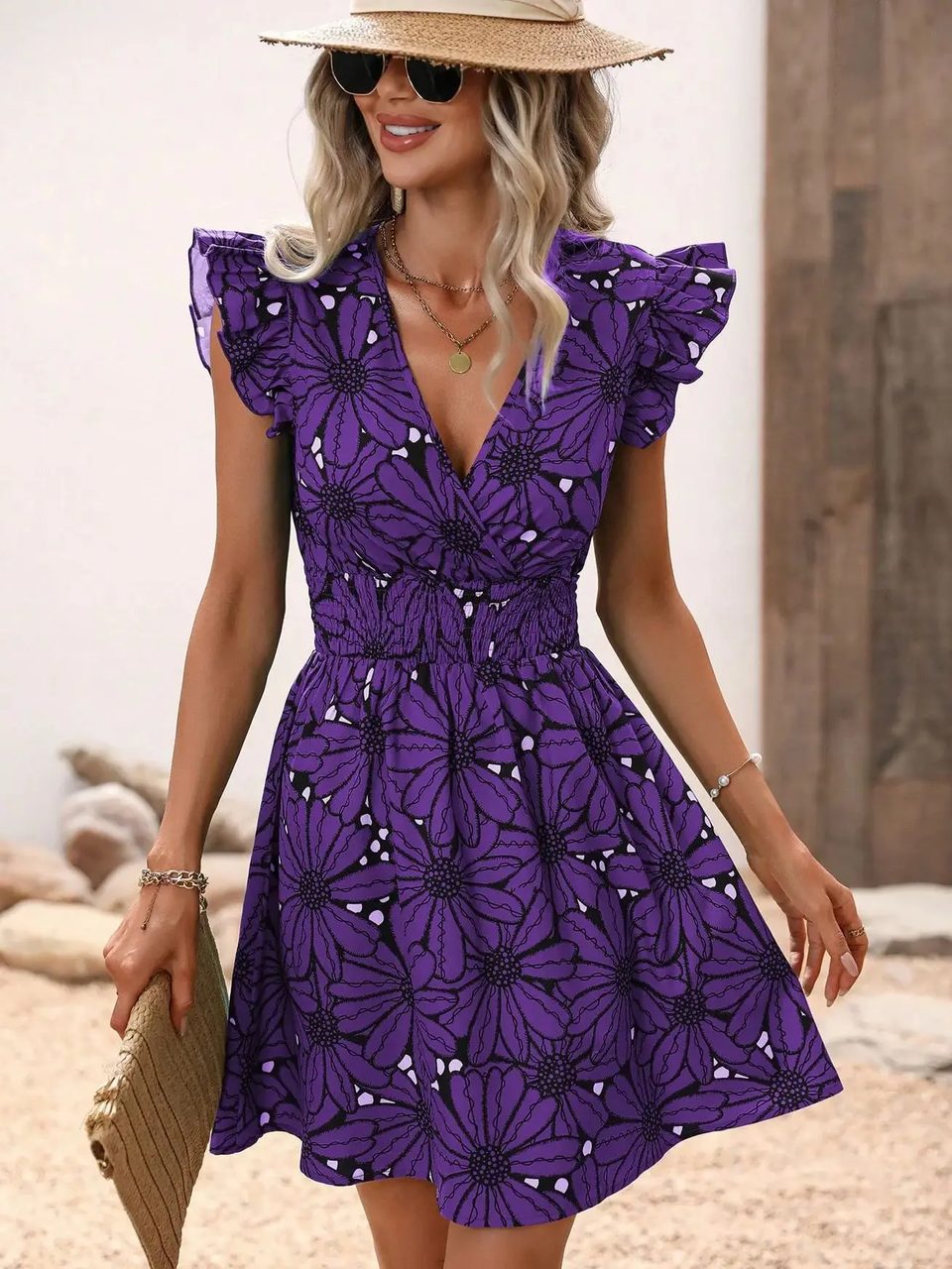 Cette pièce est à la fois élégante et romantique avec ses petits volants sur les épaules, sa coupe qui vous met en valeur et son imprimé floral. Son décolleté plongeant en V met en avant le cou et la poitrine. Élastique à la taille, votre silhouette est marquée, ajustée sur le haut et plus vaporeuse sur la jupe, pour un ensemble résolument féminin.