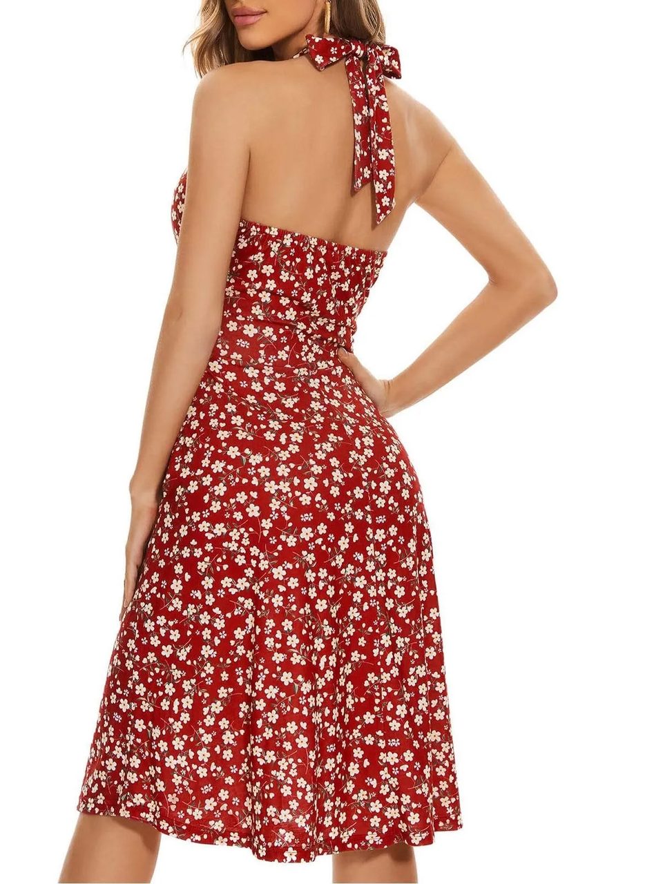 Notre robe fleurie décolletée dos nu est une pièce glamour qui saura mettre vos atouts en avant. Son décolleté plongeant en V, met l'accent sur votre poitrine. Sa longueur courte fait ressortir vos jambes et son dos nu la rend vraiment sexy sous tout les angles. Elle se noue dans la nuque pour que vous puissiez l'ajuster comme vous voulez.