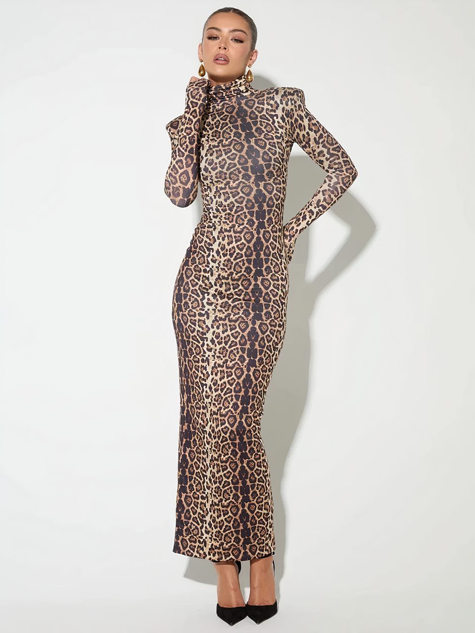 Cette robe est parfaite pour toutes les occasions, que ce soit pour une soirée entre amis, une sortie en ville ou même pour une journée au bureau. Associée à des talons hauts et des accessoires dorés, elle vous garantit un look tendance et irrésistible. Le motif léopard apporte une touche sauvage et glamour, tandis que le col haut et les manches longues ajoutent une note sophistiquée et chic.