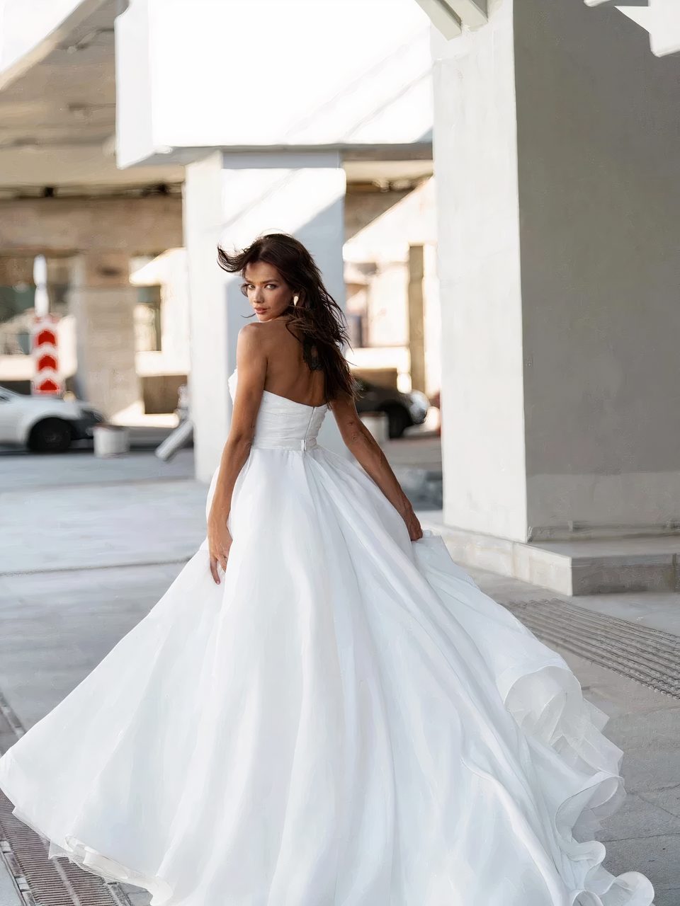Notre robe de mariage bustier est LA robe de princesse par excellence avec son magnifique buste à perles, sa taille bien marquée et son jupon voluptueux à traîne. C'est un chef-d'œuvre d'élégance et de glamour. Le bustier plissé est orné de perles sur sa partie haute qui forment comme un voile : elles apportent une touche de raffinement et de finesse. Le résultat est particulièrement féminin et magnifique.