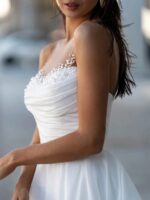 La jupe fluide et vaporeuse de notre robe de mariée ajoute une note de romantisme et cette vision de robe de princesse. Elle est idéale pour celles qui souhaitent briller de mille feux le jour de leur union et être la plus resplendissante. Quelle que ce soit la cérémonie envisagée, cette robe saura convenir à de nombreuses mariées.