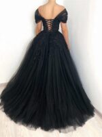 En noir, cette robe est élégante et raffinée. Elle sera parfaite pour un bal, une soirée de gala ou un évènement où vous souhaitez vous sentir telle une princesse. Sa coupe met en valeur la silhouette et ses détails sophistiqués la rendent parfaite pour les grandes occasions. Elle fera de vous la reine de la soirée et attirera tous les regards.