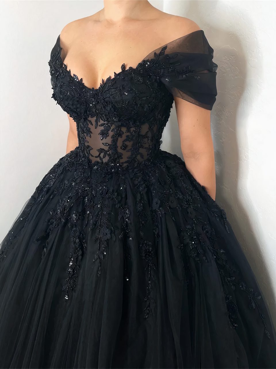 Notre robe princesse noire à perles est une pièce d'exception. Avec son buste cintré en tulle orné de broderies fleuries et de perles et son jupon volumineux, elle vous donne une réelle allure de princesse des temps moderne. Parfaite pour les grandes occasions, vous vous sentirez belle et à l'aise dans cette magnifique robe.