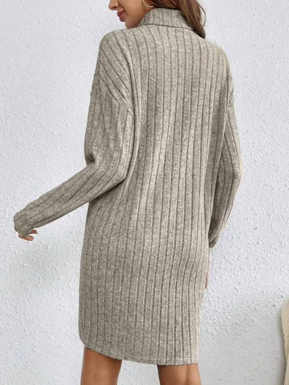 Notre robe pull beige à col roulé est la pièce parfaite pour allier confort et sophistication. Avec sa coupe droite et épurée, elle met en valeur toutes les silhouettes tout en offrant une allure chic et moderne. Sa teinte beige douce et naturelle s'harmonise facilement avec toutes les palettes de couleurs, faisant de cette robe un incontournable de votre garde-robe.