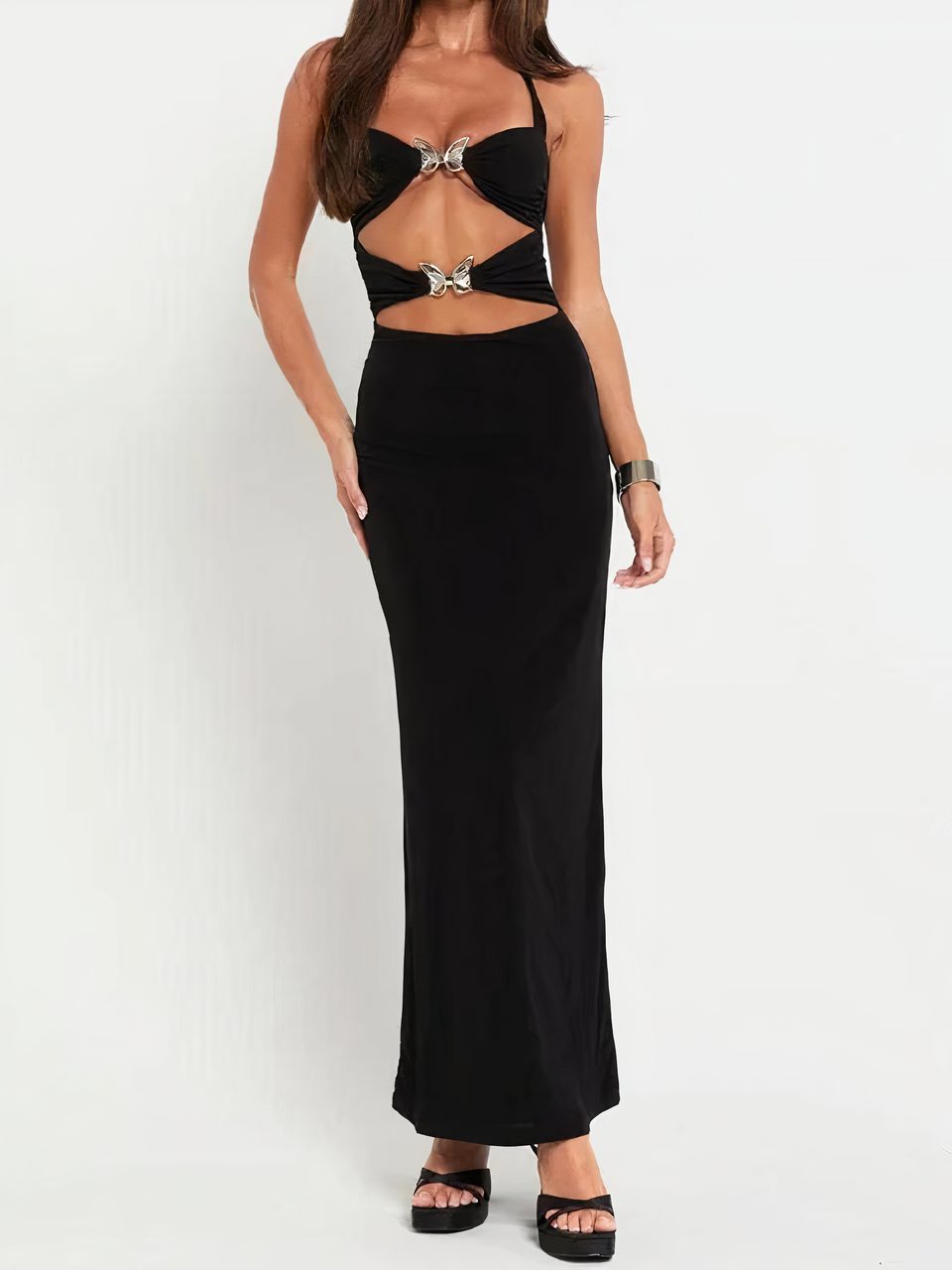 Robe sexy noire détails papillons