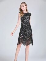 Parfaitement ajustée et très facile à porter, cette robe à franges vous accompagnera en de nombreuses occasions. Les cocktails chic, les soirées à thème ou les anniversaires, les soirées dansantes, elle sera parfaite pour toutes vos sorties élégantes. Il est simple de lui associer des accessoires comme des gants en satin par exemple ou un boa de plumes, une écharpe longue et fine, ou tout autre qui sera à votre goût.
