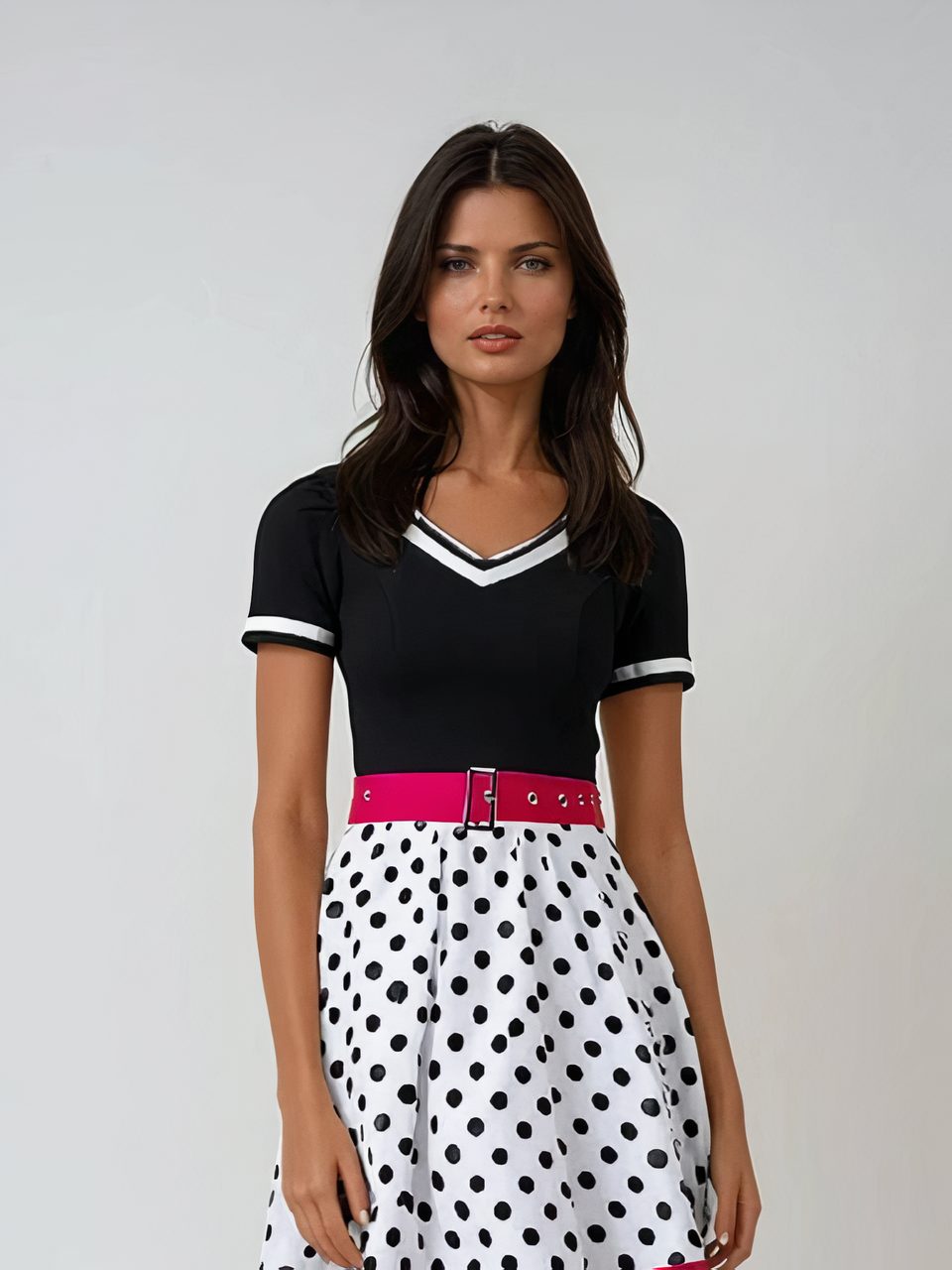Cette robe années 50 propose le style Rockabilly en version plissée à pois : elle est un hommage vibrant à l'élégance et au glamour de cette époque. Cintrée à la taille, sa jupe plissée qui virevolte à chacun de vos pas, met en valeur votre silhouette et souligne la féminité. Le motif à pois, emblème des 50's, apporte la touche rétro indispensable.