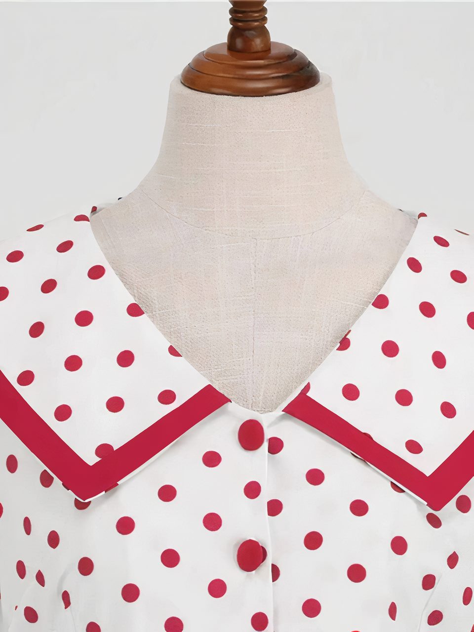 Associée à des talons hauts à plateforme et des accessoires vintage, elle vous apportera un look rétro élégant et raffiné qui ne passera pas inaperçu. Que vous soyez une adepte du style vintage ou juste à la recherche d'une pièce originale pour égayer votre garde-robe, sa couleur blanche rafraîchissante à pois de couleurs contrastées saura vous séduire par son charme indéniable.