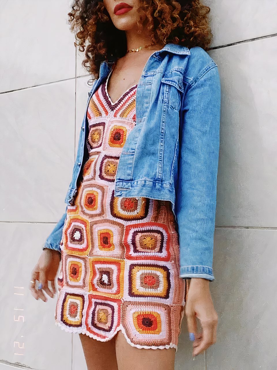 Robe années 70 au crochet style patchwork