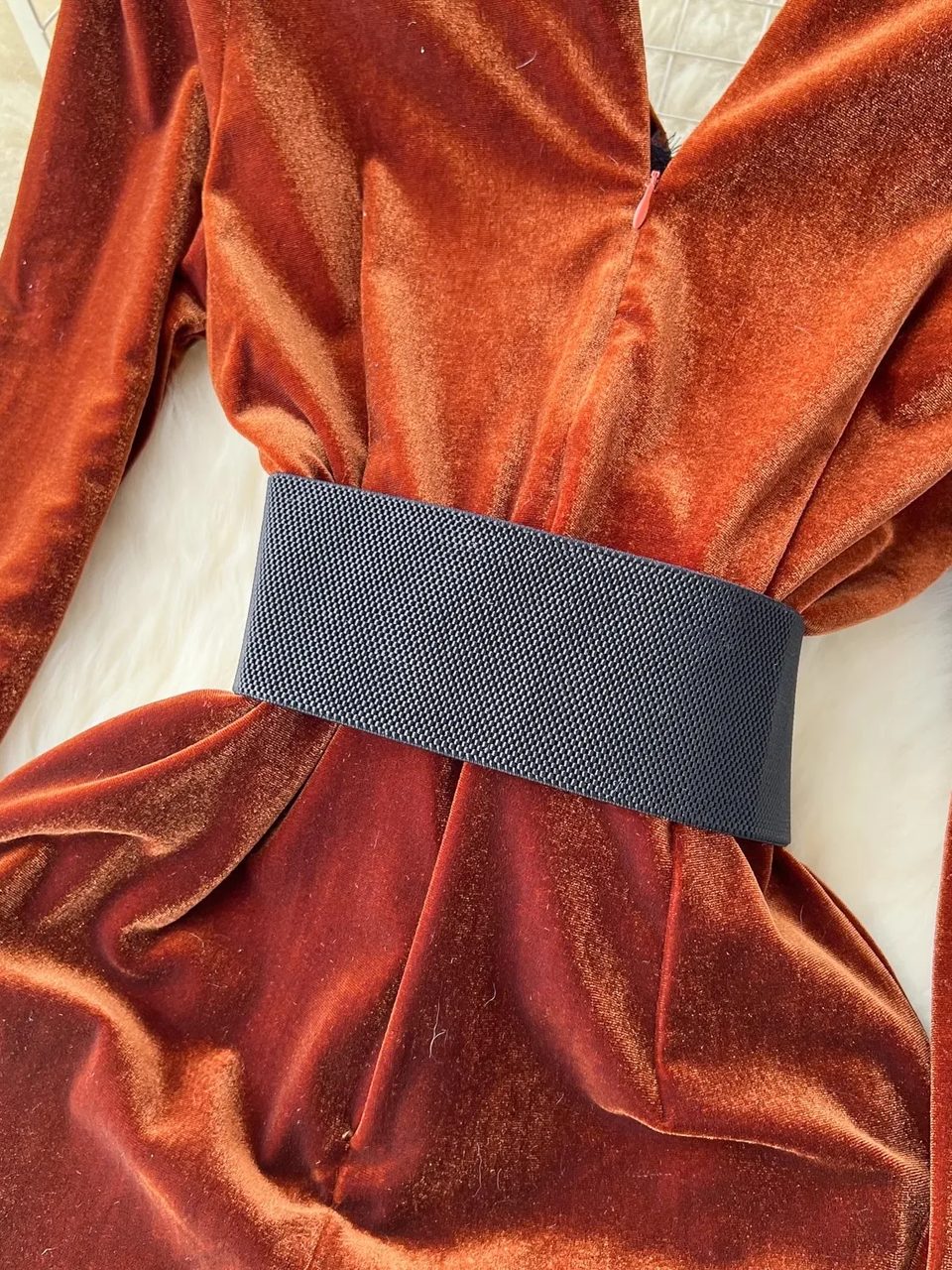 Notre magnifique robe vintage en velours est un véritable bijou d'élégance et de raffinement. Confectionnée dans un tissu doux et luxueux, ajustée, elle épouse parfaitement les courbes pour mettre la silhouette en valeur. Sa large ceinture élastique souligne la taille en apportant une touche de sophistication tout en restant très confortable. Le velours, matière emblématique des années rétro, est ici légèrement stretch pour une grande liberté de mouvements.